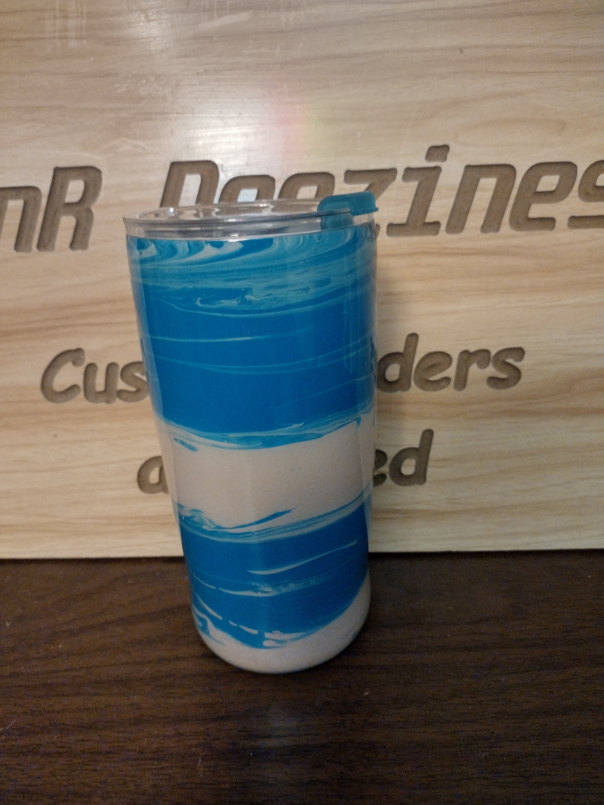 "Sip in style with our 20 oz Beach Tumbler! Handcrafted using fluid art and resin, this tumbler is perfect for keeping your drink insulated while enjoying a day at the beach. Add a fun touch with the vinyl decal and embrace the summertime vibes. Limited edition. Custom orders available. Disclaimer: slight differences may occur due to the handcrafted nature."