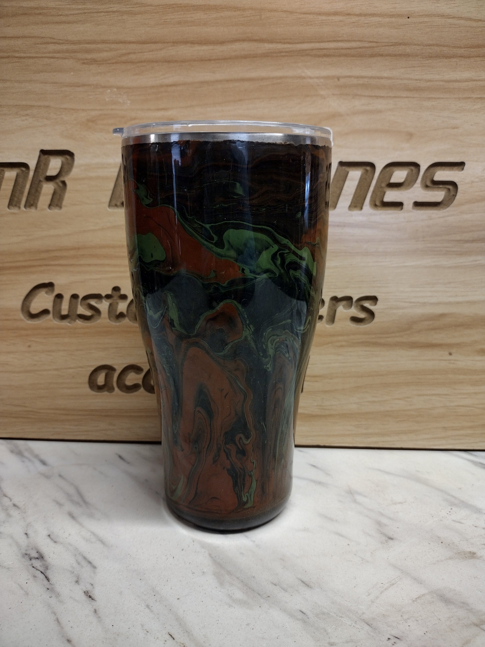 Stay hydrated in style with our Camo 30 oz Tumbler! This insulated tumbler features a unique camo design and is perfect for keeping your drinks at the perfect temperature while on the go. Plus, the fluid art adds a touch of creativity to your daily routine. Take it with you on your next adventure and stand out in a crowd!