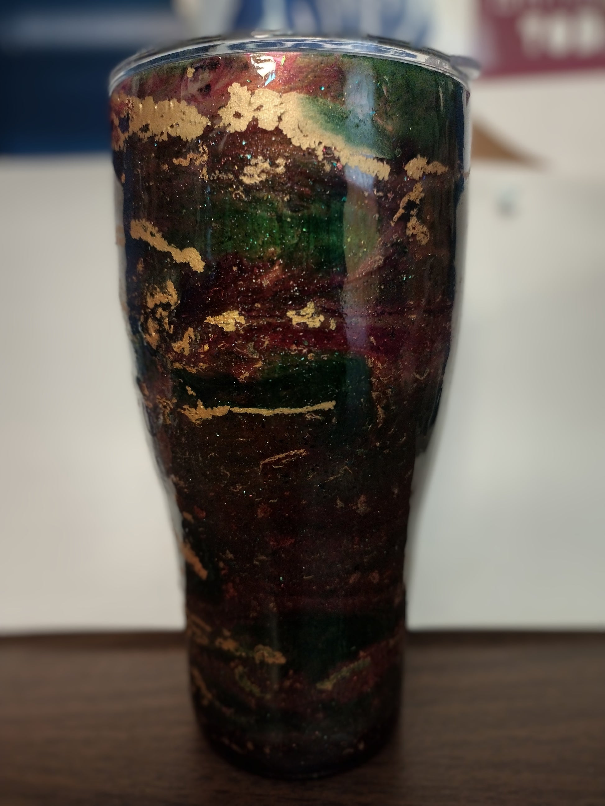Indulge in the luxury of the handcrafted Exotic Majesty tumbler. Its unique fluid art design, made with high-quality resin, creates a one-of-a-kind piece. With its 30 oz capacity, this insulated tumbler is perfect for your exotic lifestyle. Please note: slight differences may occur due to the handcrafted nature of this product.