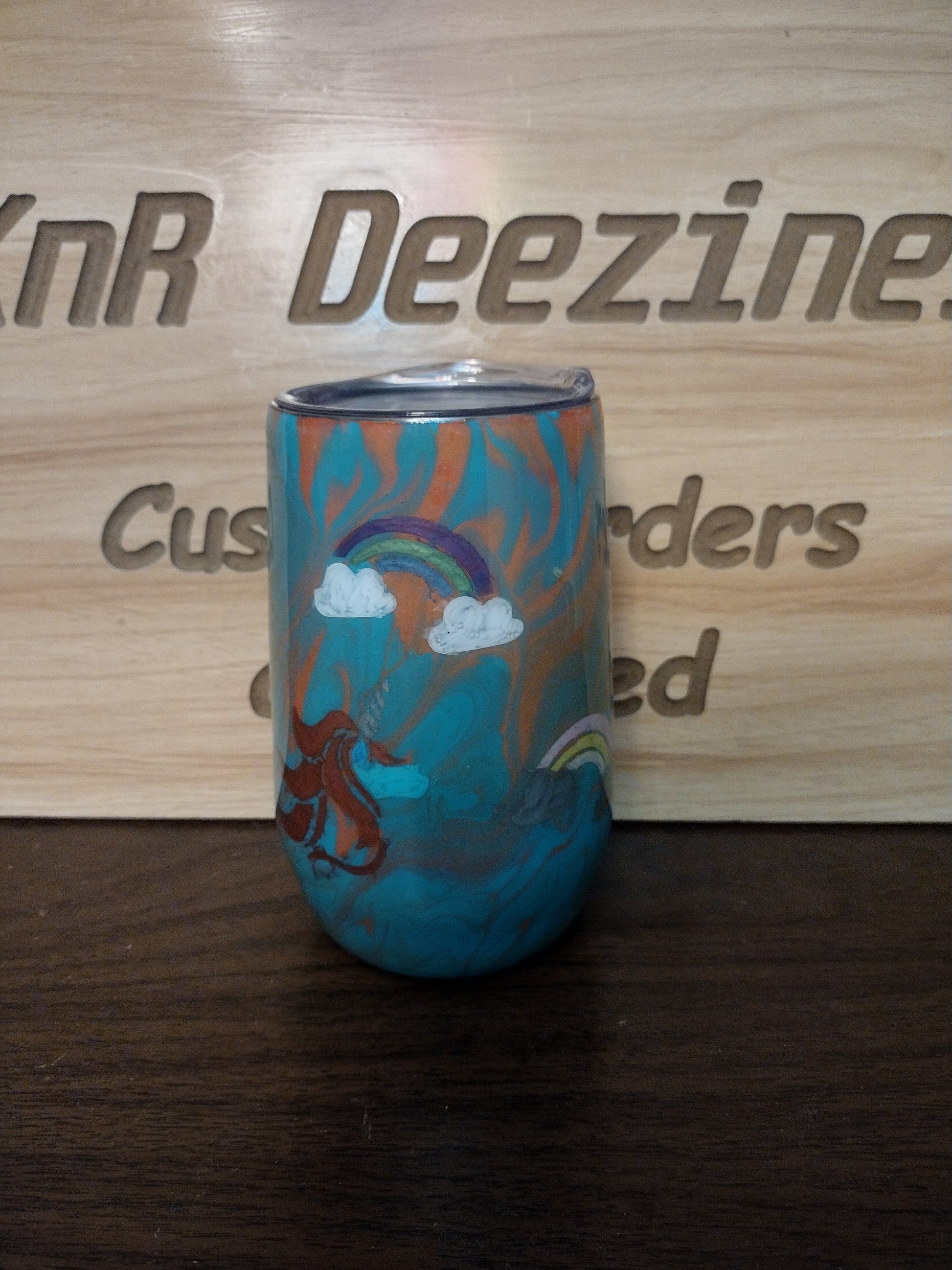 Spark joy every day with our Rainbows and Unicorns 16 oz Tumbler! Made with fluid art and hand painted resin, this limited edition tumbler features adorable unicorns and rainbows. Stay refreshed with its insulated design. (Slight differences due to being handcrafted. Custom orders accepted.)