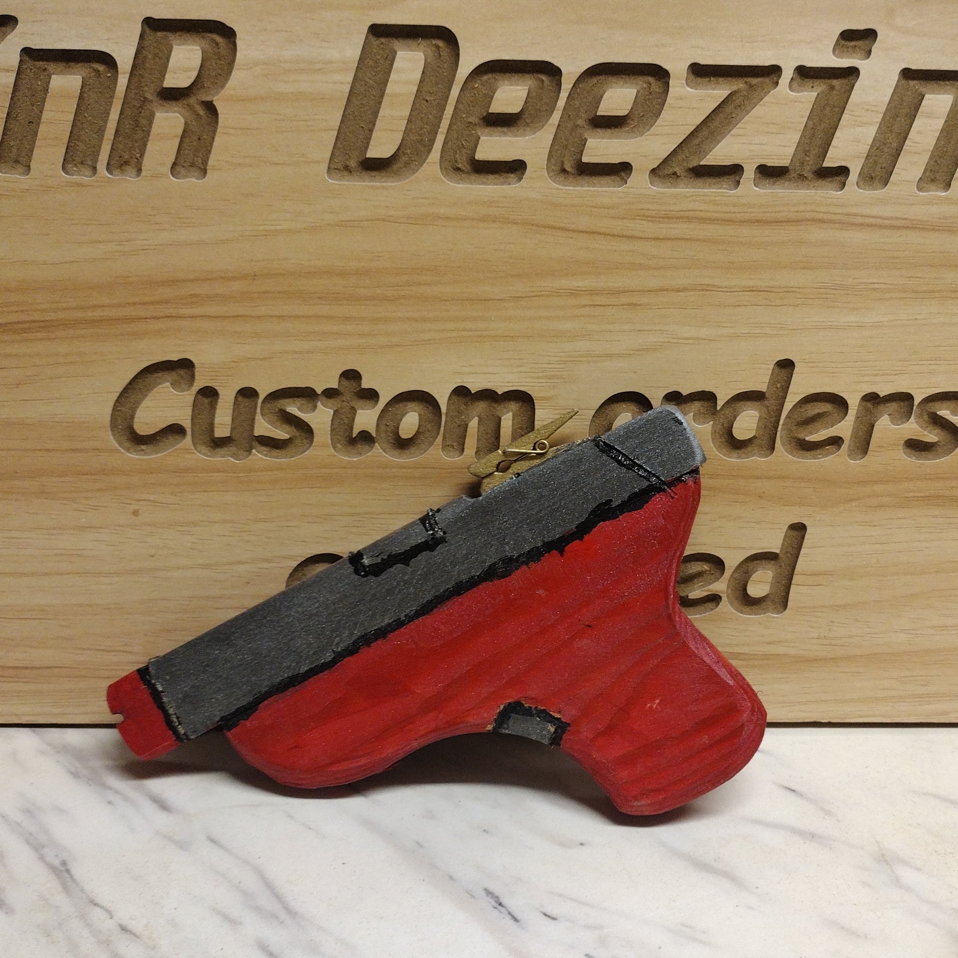 This wooden, hand-carved rubber band pistol is a fun, nostalgic toy that sparks imagination and creativity in kids of all ages. It comes with 5 rubber bands to get the play started right away. Each piece is unique with slight variations in color and detail, making every shooter one-of-a-kind. Please note, colors vary based on availability and small differences occur due to the handcrafted nature of the item. Perfect for playful moments that bring a smile and a touch of old-school charm.