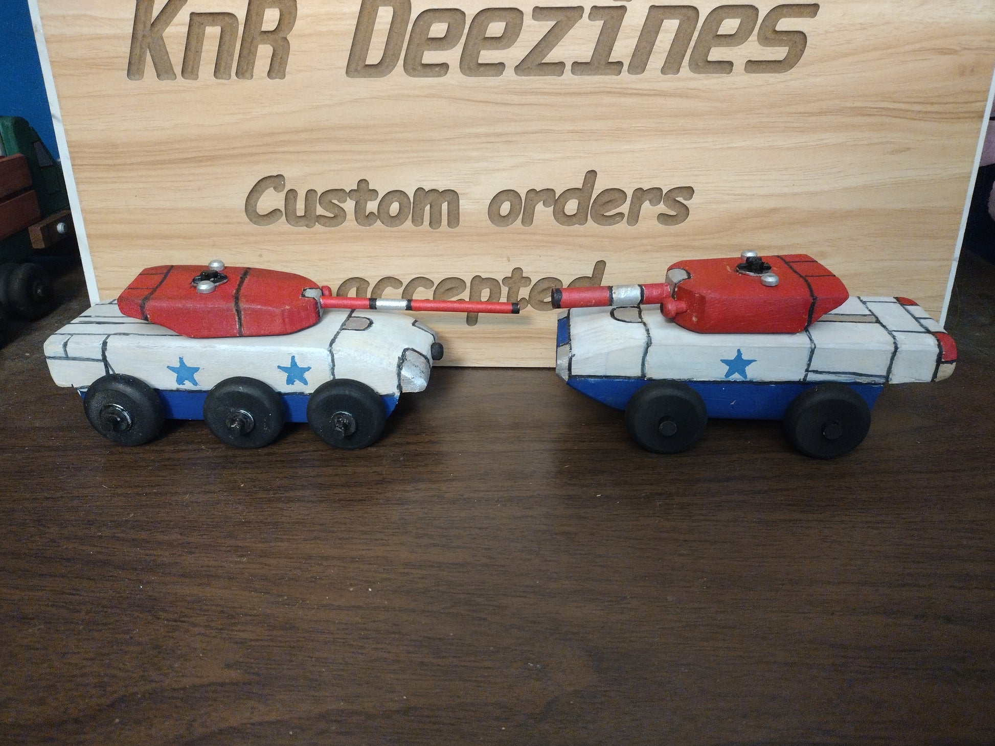Unleash your child's imagination with our fully articulated Medium Tank! Handmade from high-quality wood, this toy is built to last. Perfect for kids who love to play with their hands (and minds)! DISCLAIMER: Each piece is handcrafted and will have slight differences. Colors vary based on available inventory.