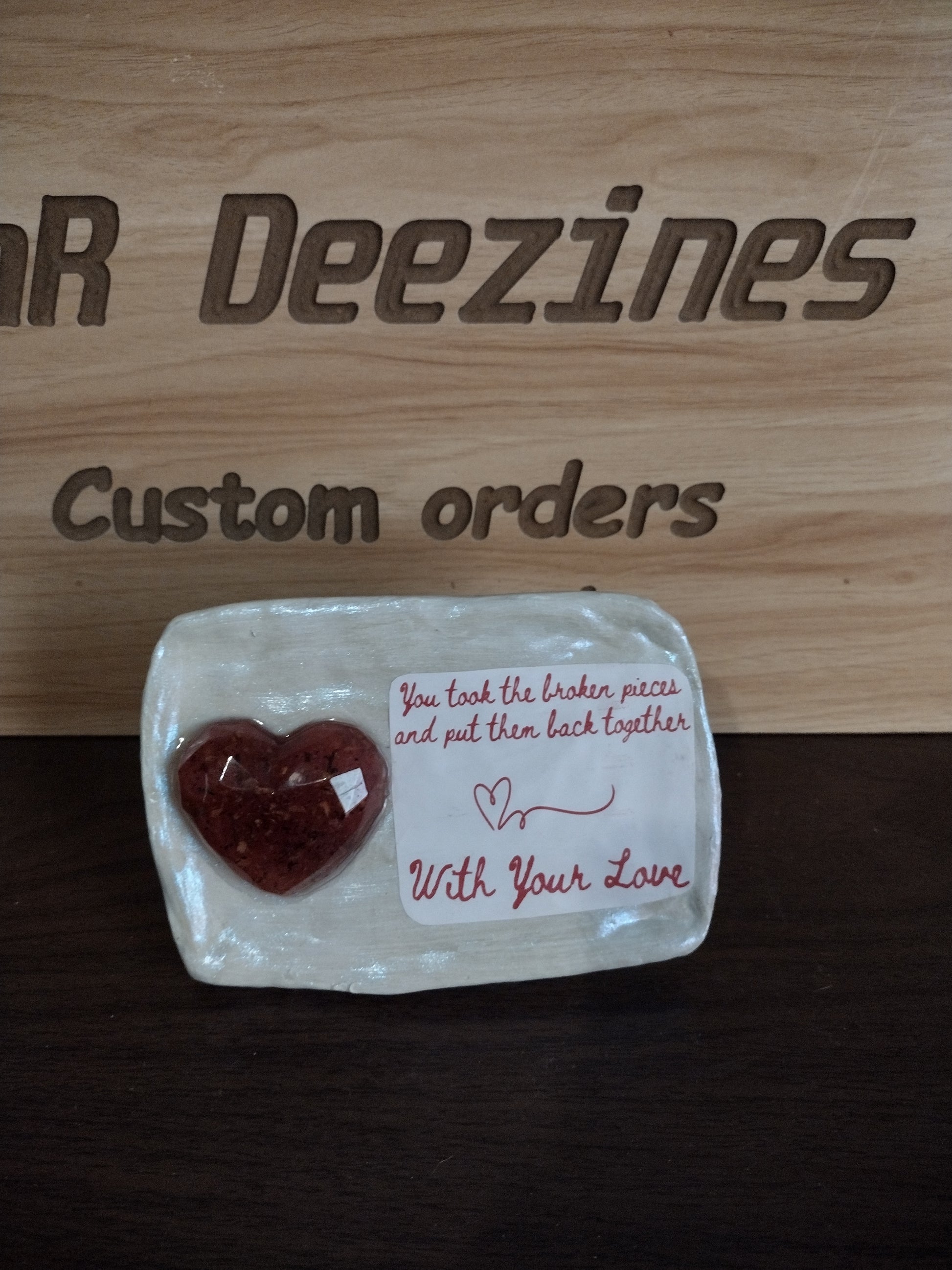 Indulge in the ultimate expression of love with our Valentine's Day plaque. Handcrafted with clay, resin and wood, this limited edition plaque features a custom vinyl decal that adds a personal touch. Each piece is unique, with slight differences adding to its charm. A perfect gift to cherish your love. Colors vary based on inventory.
