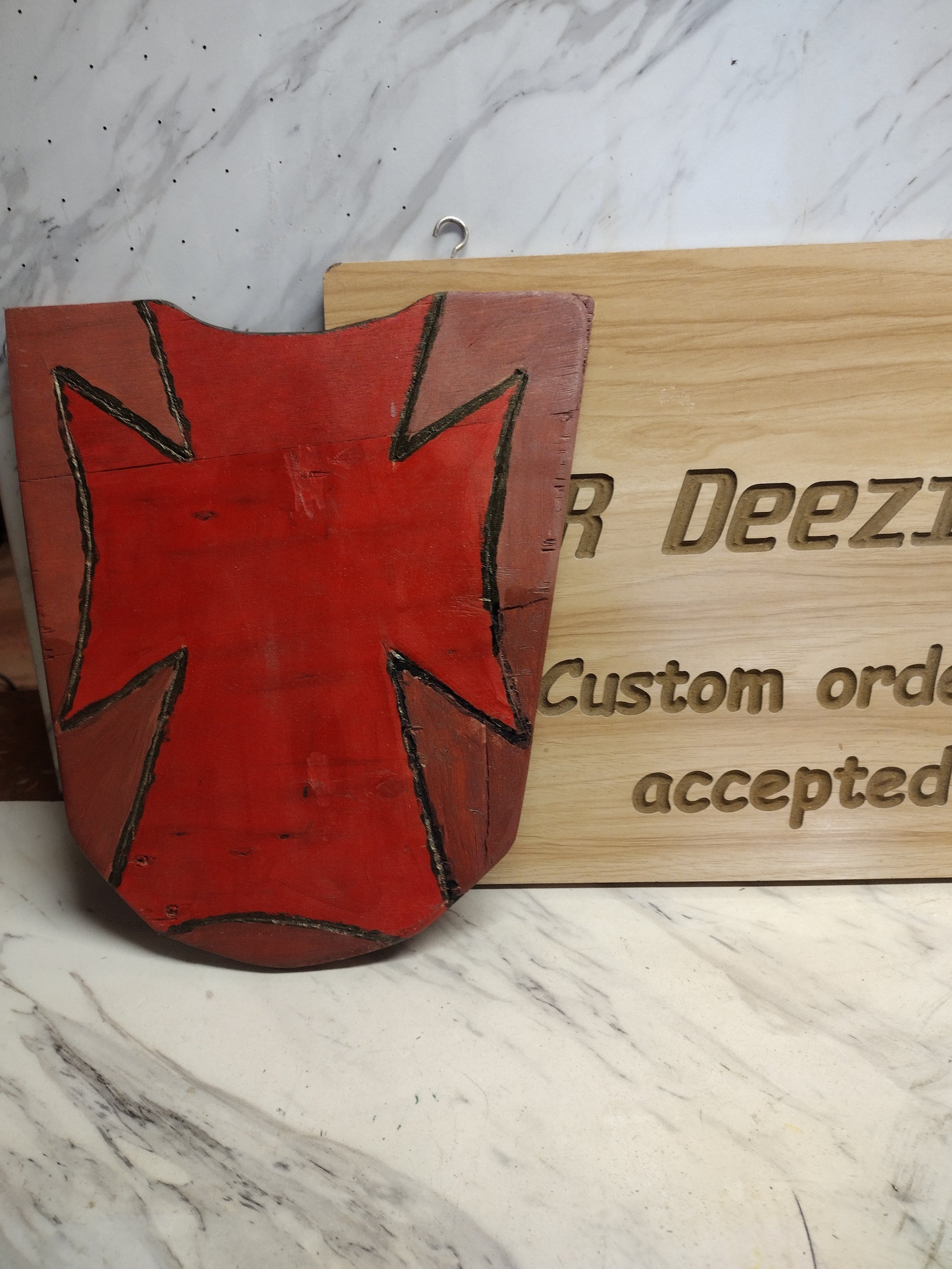 "Unleash your child's imagination with our handcrafted Wooden Shield! Perfect for cosplaying as a brave knight or adventuring in the renaissance era. Each shield is unique, giving it a touch of authenticity. (Colors may vary due to handmade construction.)"